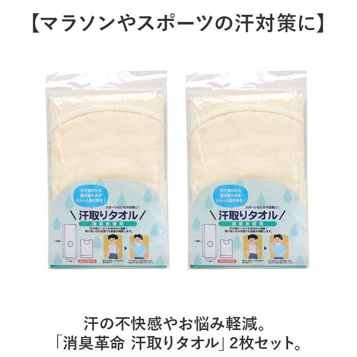・汗の不快感やお悩み軽減。「消臭革命 汗取りタオル」2枚セット。