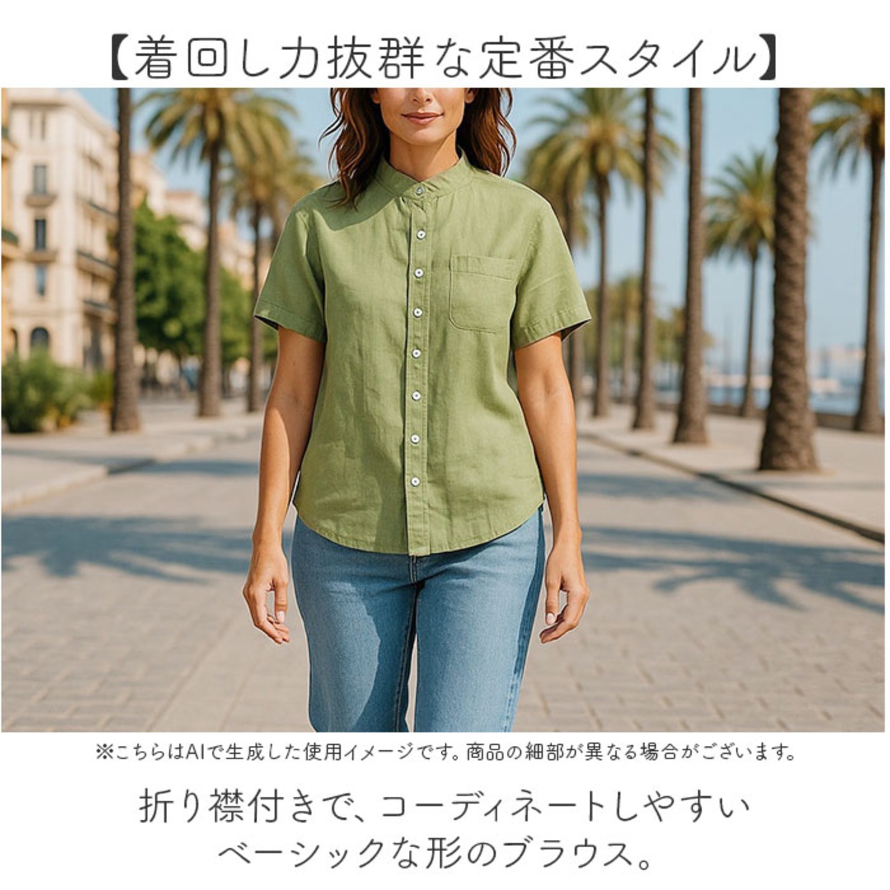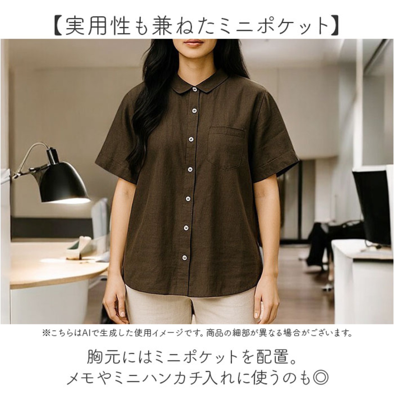 ・折り襟付きで、コーディネートしやすいベーシックな形のブラウス。