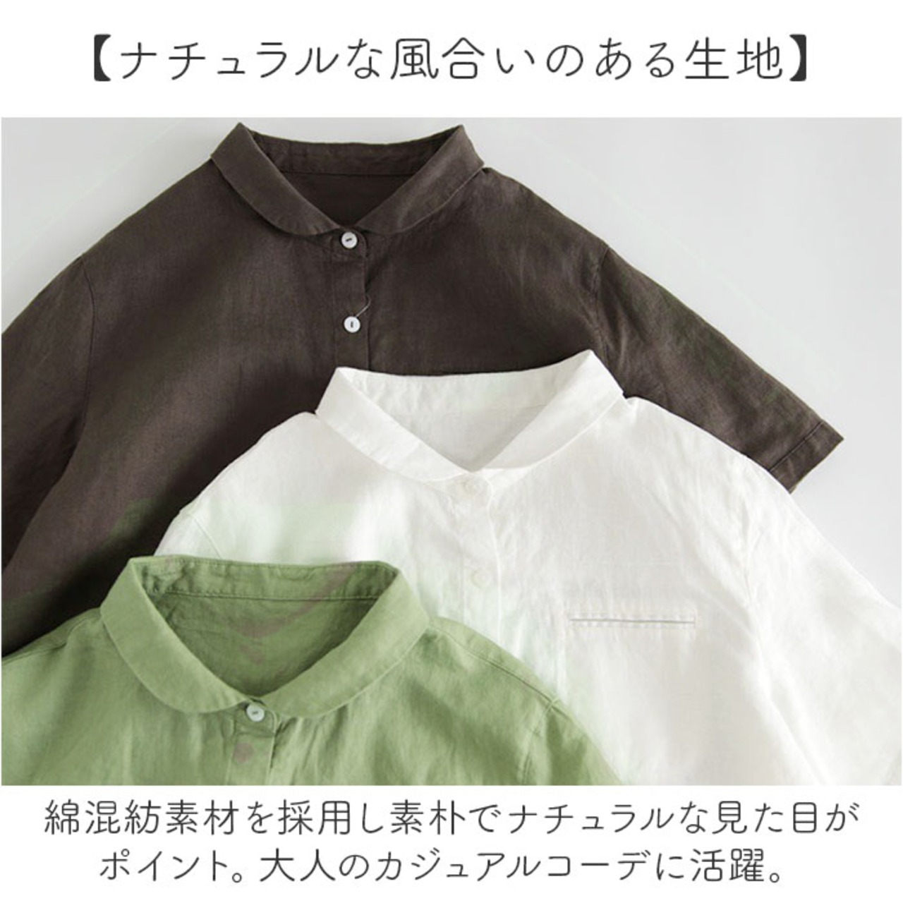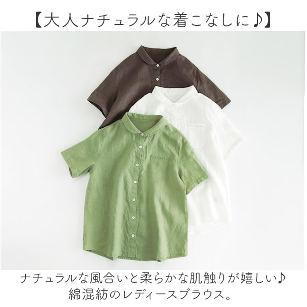・ナチュラルな風合いと柔らかな肌触りが嬉しい♪綿混紡のレディースブラウス。