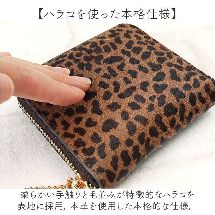 ・柔らかい手触りと毛並みが特徴的なハラコを表地に採用。本革を使用した本格的な仕様。