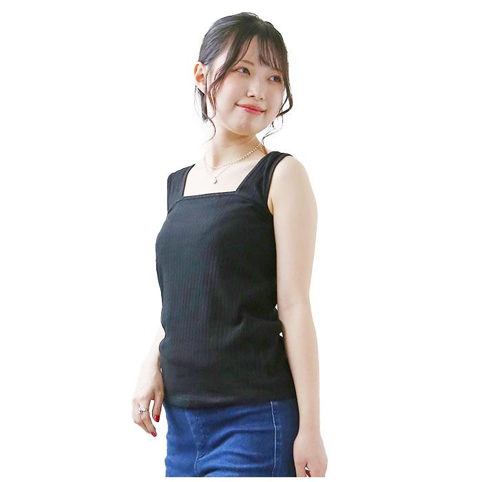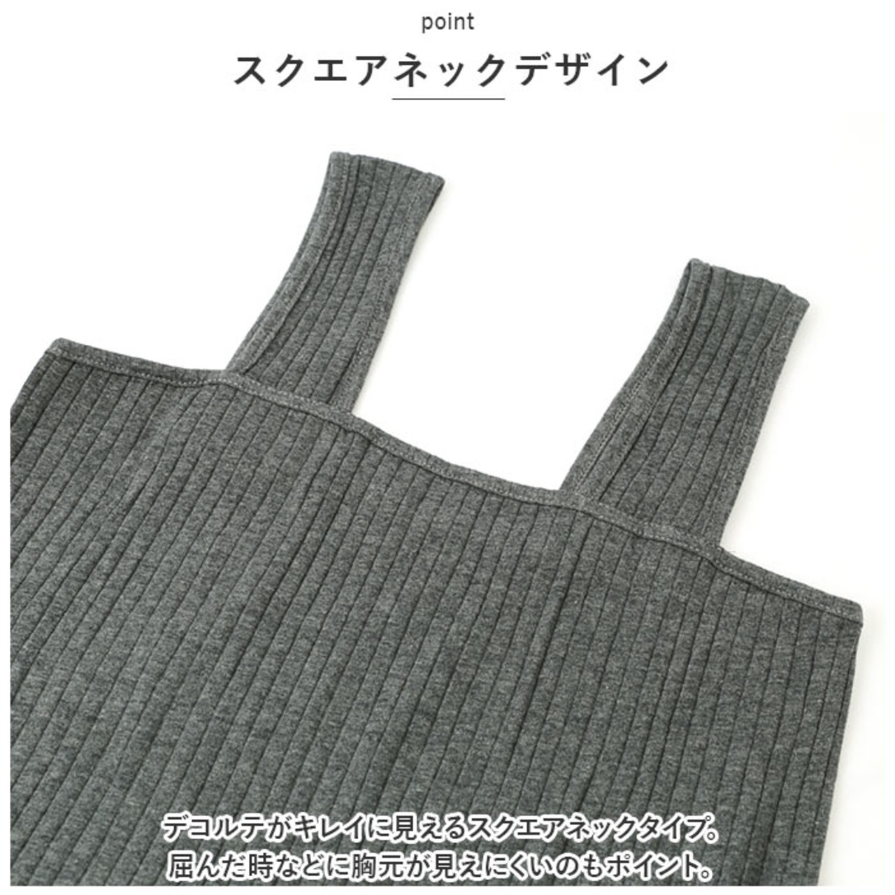・デコルテがキレイに見えるスクエアネックタイプ。屈んだ時などに胸元が見えにくいのもポイント。