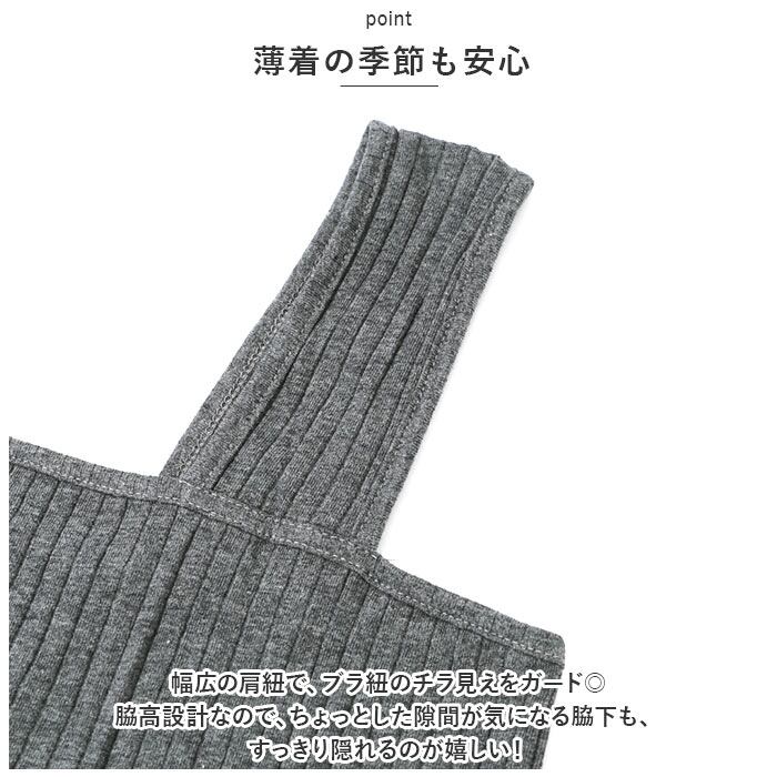 ・幅広の肩紐で、ブラ紐のチラ見えをガード◎脇高設計なので、ちょっとした隙間が気になる脇下も、すっきり隠れるのが嬉しい!