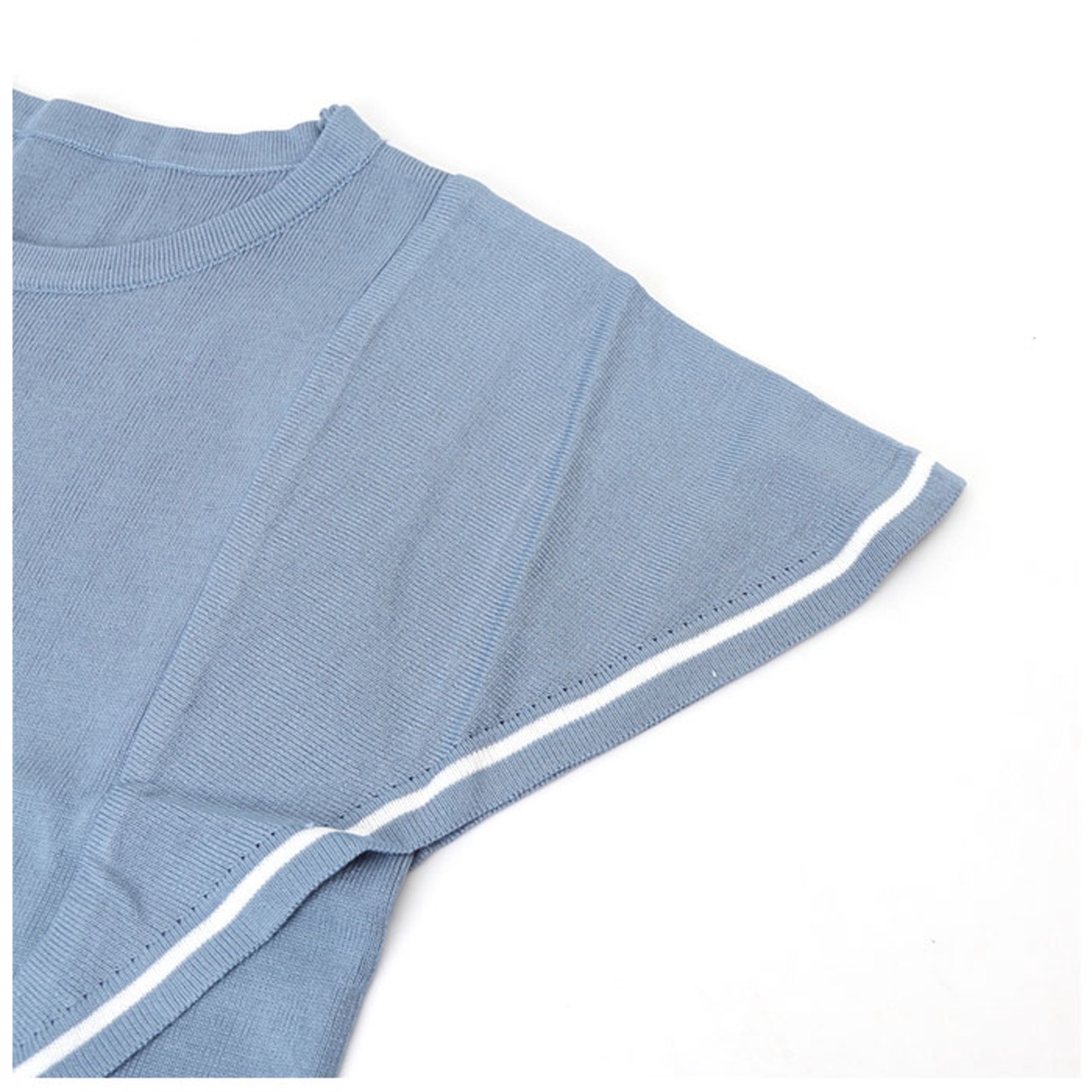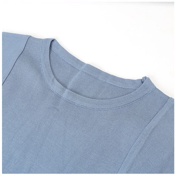 ・涼しげなシアーニット素材を採用。汗をかいてもムレにくく、夏でも快適な着用感。(※透け感があるため、お手持ちのインナーを着用することをおすすめします。)