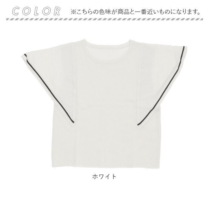 ・シンプルな無地カラーに、色味の異なる袖口ラインをプラス。エアリーなラッフルスリーブが、気になる二の腕まわりをおしゃれにカバー◎