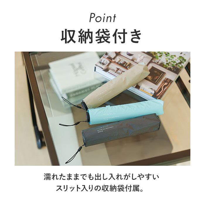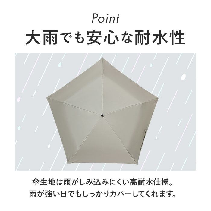 ・傘生地は雨がしみ込みにくい高耐水仕様。雨が強い日でもしっかりカバーしてくれる♪