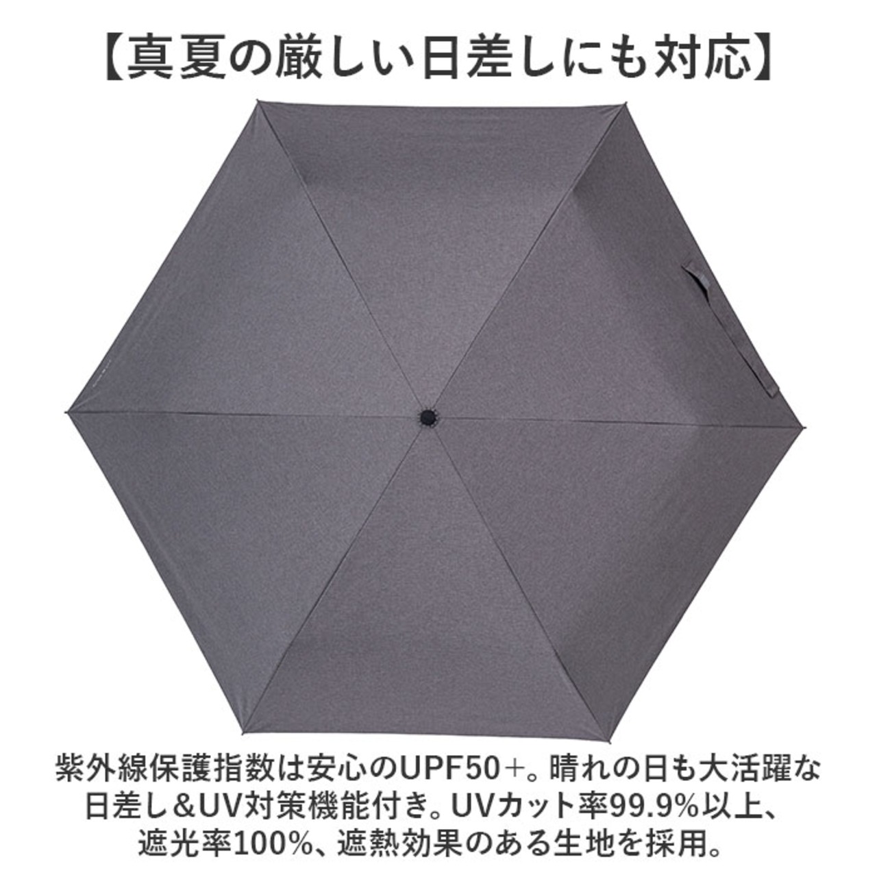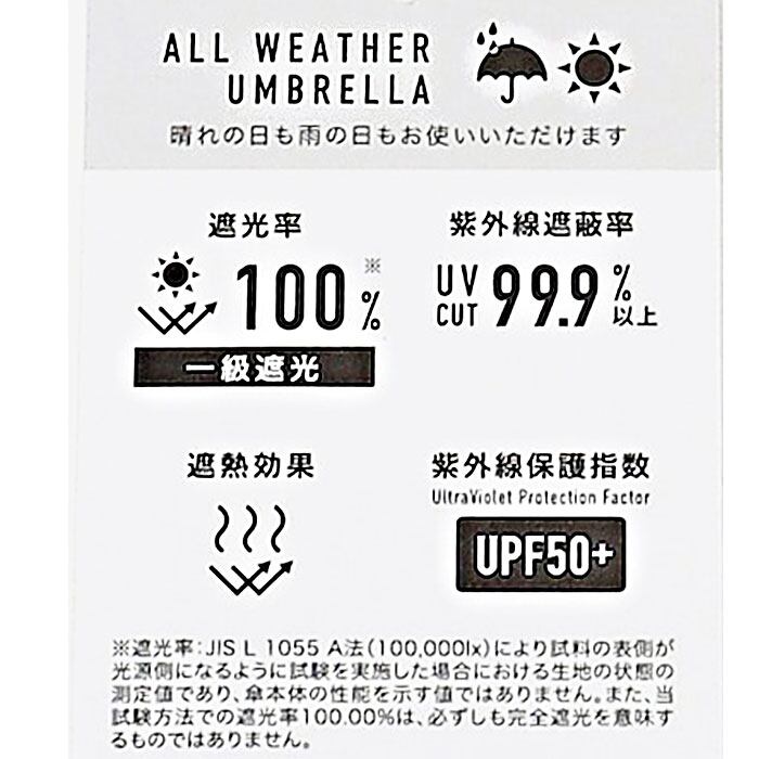 ・紫外線保護指数は安心のUPF50+。晴れの日も大活躍な日差し&UV対策機能付き。UVカット率99.9%以上、遮光率100%、遮熱効果のある生地を採用。