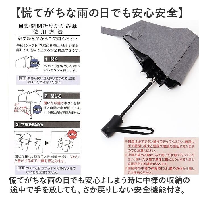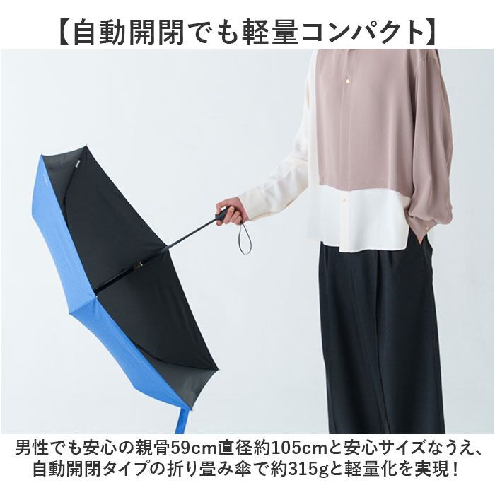 ・男性でも安心の親骨59cm直径約105cmと安心サイズなうえ、自動開閉タイプの折り畳み傘で約315gと軽量化を実現!