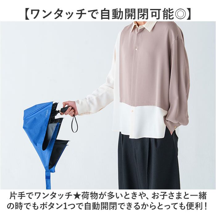・片手でワンタッチ★荷物が多いときや、お子さまと一緒の時でもボタン1つで自動開閉できるからとっても便利!
