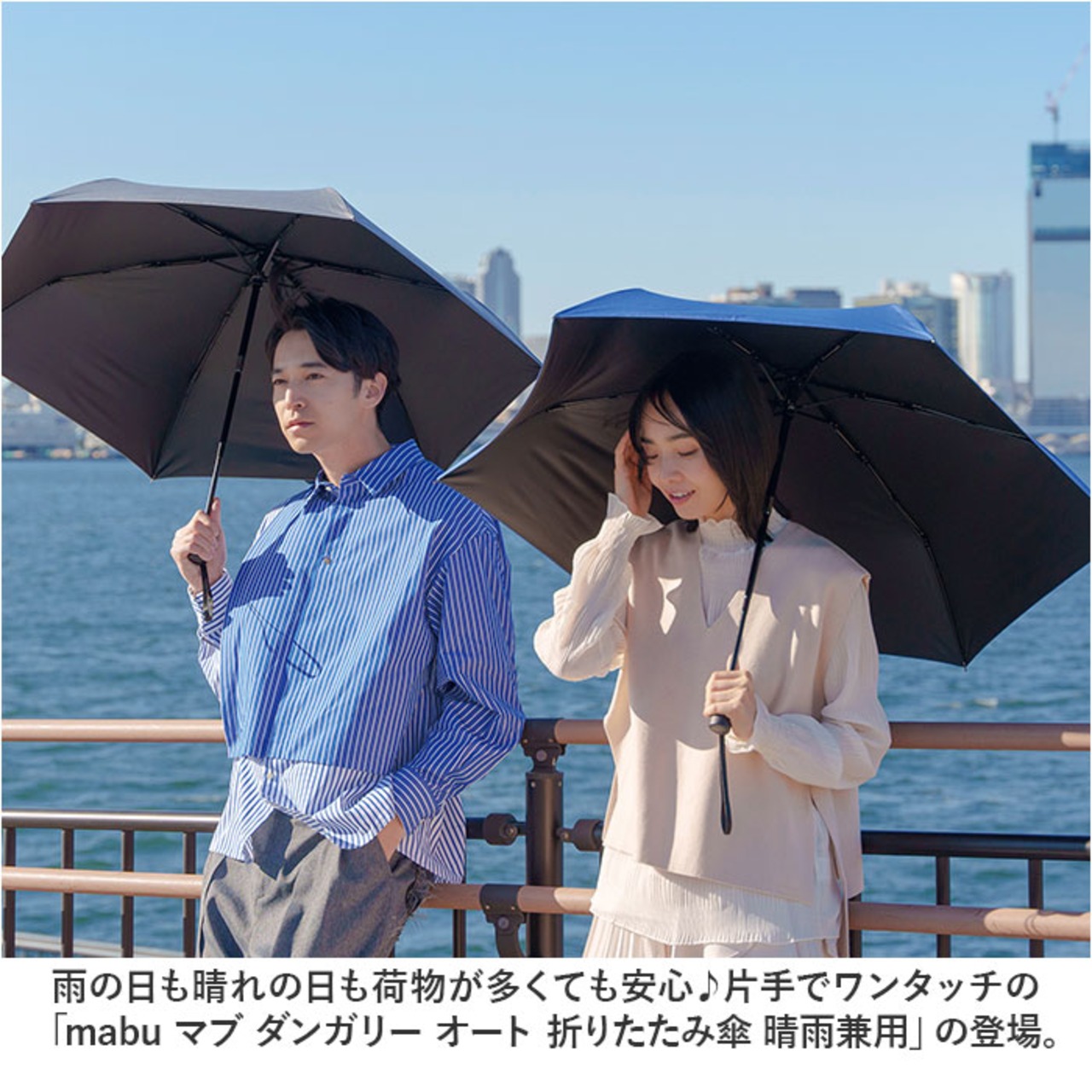 ・雨の日も晴れの日も荷物が多くても安心♪片手でワンタッチの「mabu マブ ダンガリー オート 折りたたみ傘 晴雨兼用」の登場。