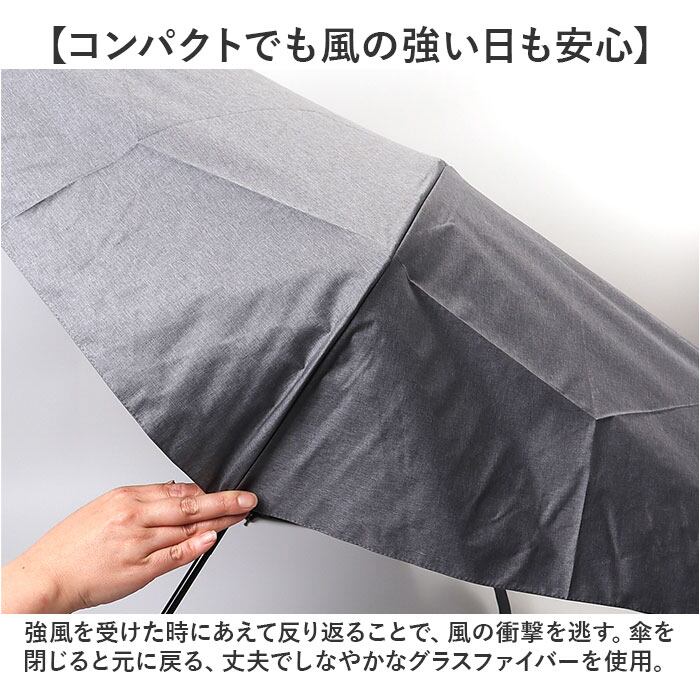 ・強風を受けた時にあえて反り返ることで、風の衝撃を逃す。傘を閉じると元に戻る、丈夫でしなやかなグラスファイバーを使用。