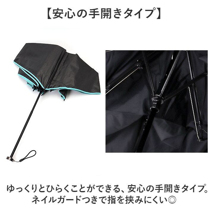 ・内側の黒色生地が照り返しも吸収してくれるので、日焼けが気になる女性はもちろん、日傘男子にもオススメ。