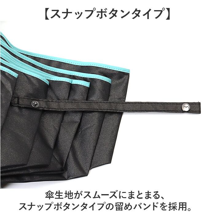 ・傘生地がスムーズにまとまる、スナップボタンタイプの留めバンドを採用。