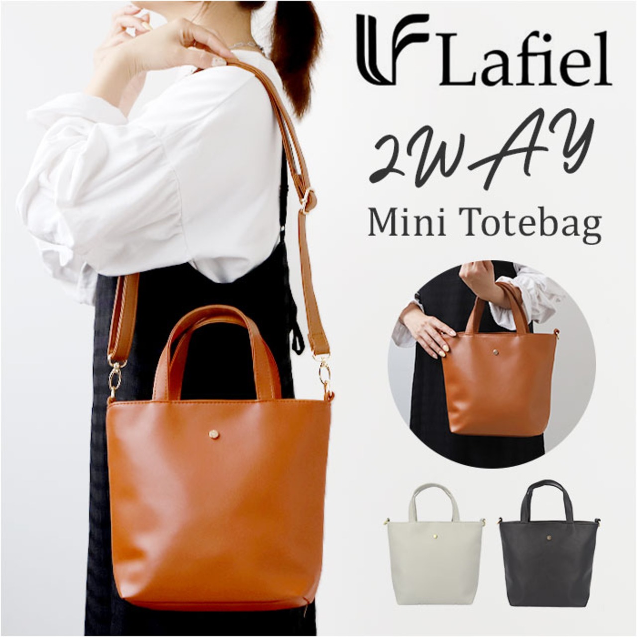 Lafiel ラフィール ミニトートバッグ 通販 スリム ミニトートバック トートバッグ トートバック トート ミニ 2WAY 合皮 柔らかい やわらかい ファスナー シンプル ブランド ストラップ 取り外し可能 カシメ