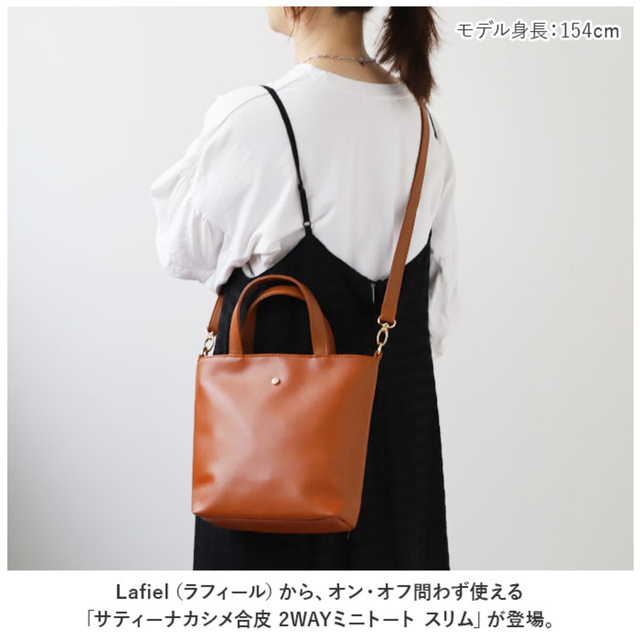 ・Lafiel(ラフィール)から、オン・オフ問わず使える「サティーナカシメ合皮 2WAYミニトート スリム」が登場。