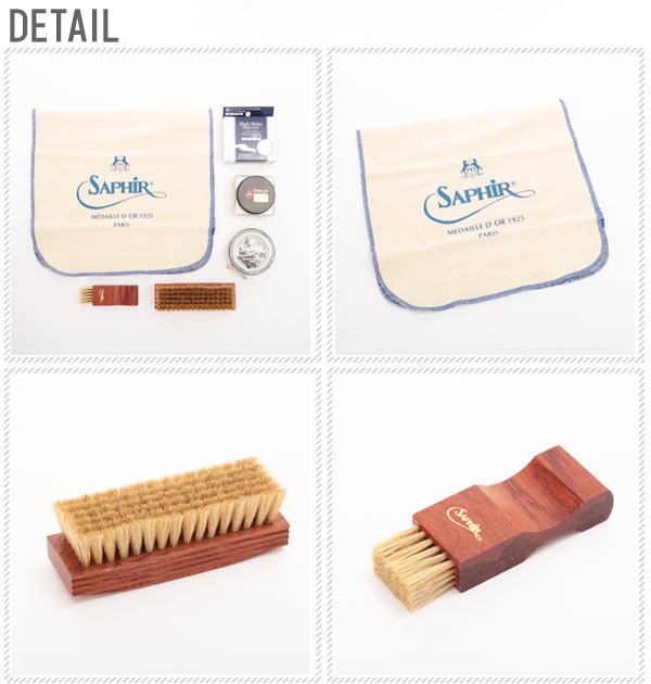 世界有数の高級・高品質シューケアブランド・SaphirNoir(サフィール ノワール)で、日常の靴のお手入れに必要なアイテムを取り揃えた「デラックス」な靴磨きセットです。カラーバリエーションとして、ブラックとニュートラルをご用意いたしました。お手持ちの靴に合わせてお手入れしていただけます。初めて使用する方でも安心のお手入れガイドを付属。お祝いやプレゼントにも最適です♪