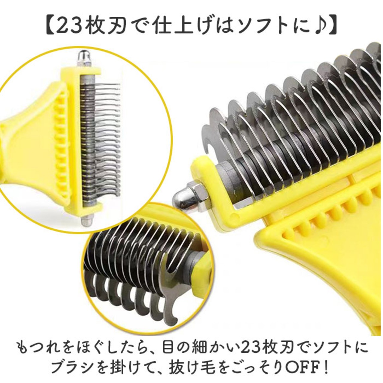 ・もつれをほぐしたら、目の細かい23枚刃でソフトにブラシを掛けて、抜け毛をごっそりOFF!