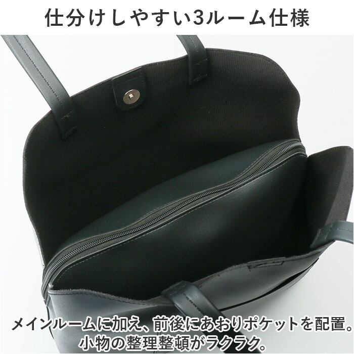 ・メインルームに加え、前後にあおりポケットを配置。小物の整理整頓がラクラク。