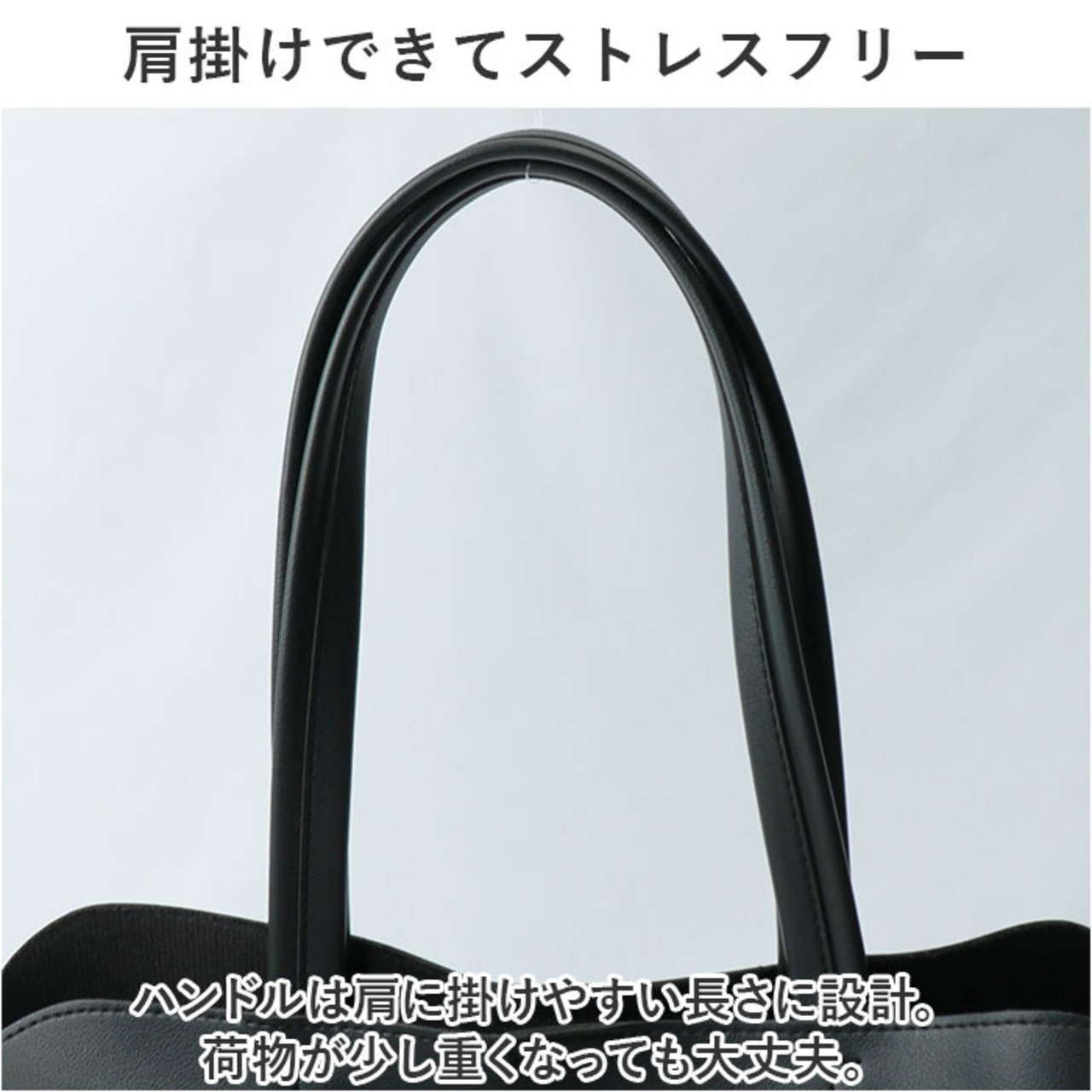 ・ハンドルは肩に掛けやすい長さに設計。荷物が少し重くなっても大丈夫。