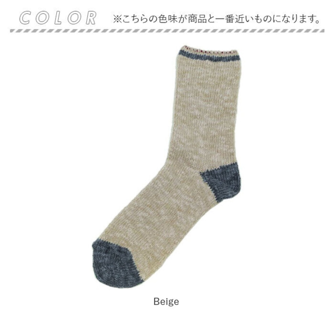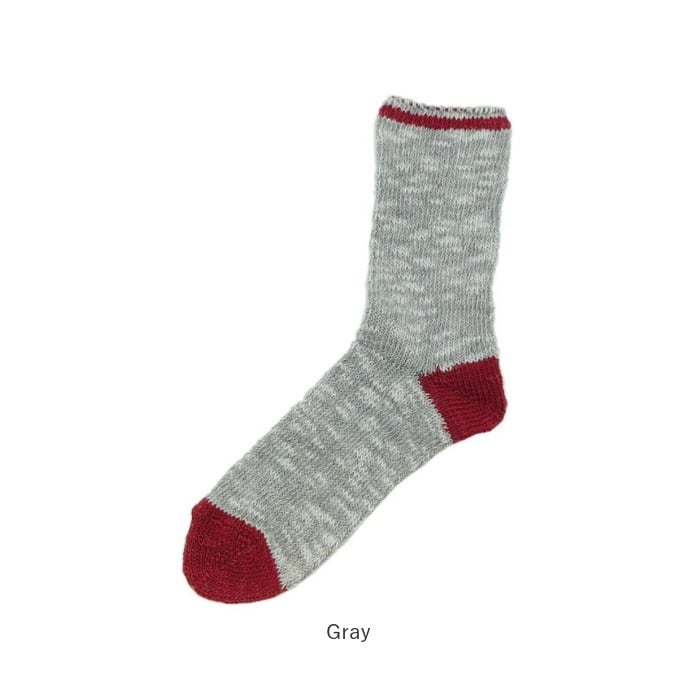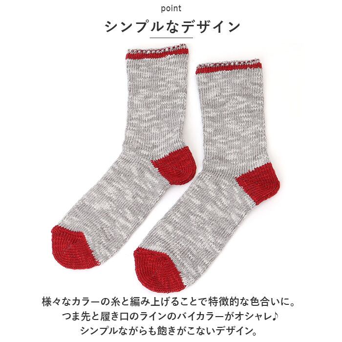 ・様々なカラーの糸と編み上げることで特徴的な色合いに。つま先と履き口のラインのバイカラーがオシャレ♪シンプルながらも飽きがこないデザイン。