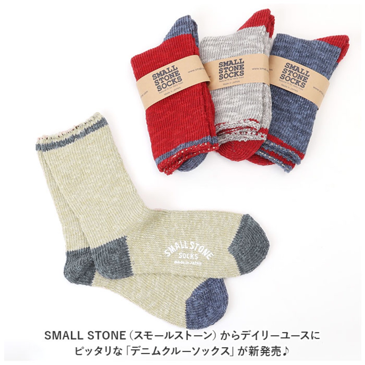 ・SMALL STONE(スモールストーン)からデイリーユースにピッタリな「デニムクルーソックス」が新発売♪