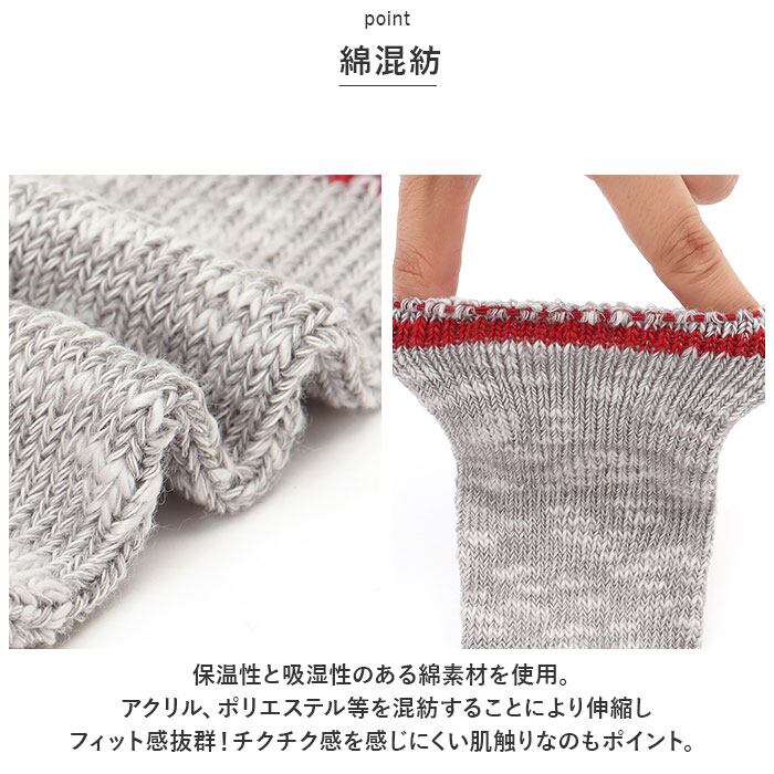 ・アクリル、ポリエステル等を混紡することにより伸縮しフィット感抜群!チクチク感を感じにくい肌触りなのもポイント。