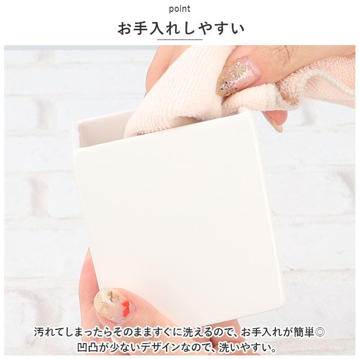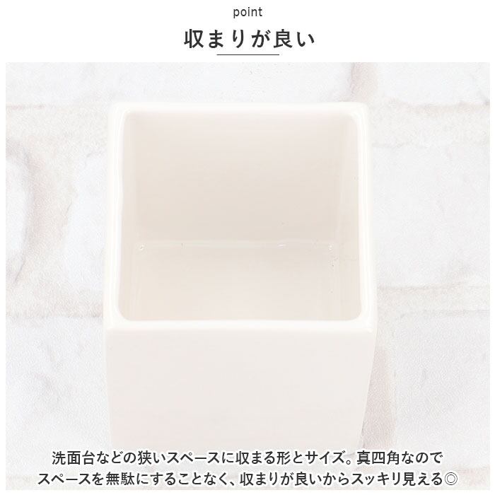 ・洗面台などの狭いスペースに収まる形とサイズ。真四角なのでスペースを無駄にすることなく、収まりが良いからスッキリ見える◎