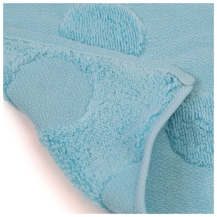 ・ガーゼ部分はサラっとなめらか、パイル部分は撚りの少ない糸(無撚糸)を使用し、しっとりした肌触り。2つの質感で、しっかり水気を拭き取ることができる◎