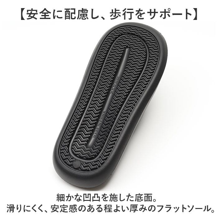 ・細かな凹凸を施した底面。滑りにくく、安定感のある程よい厚みのフラットソール。