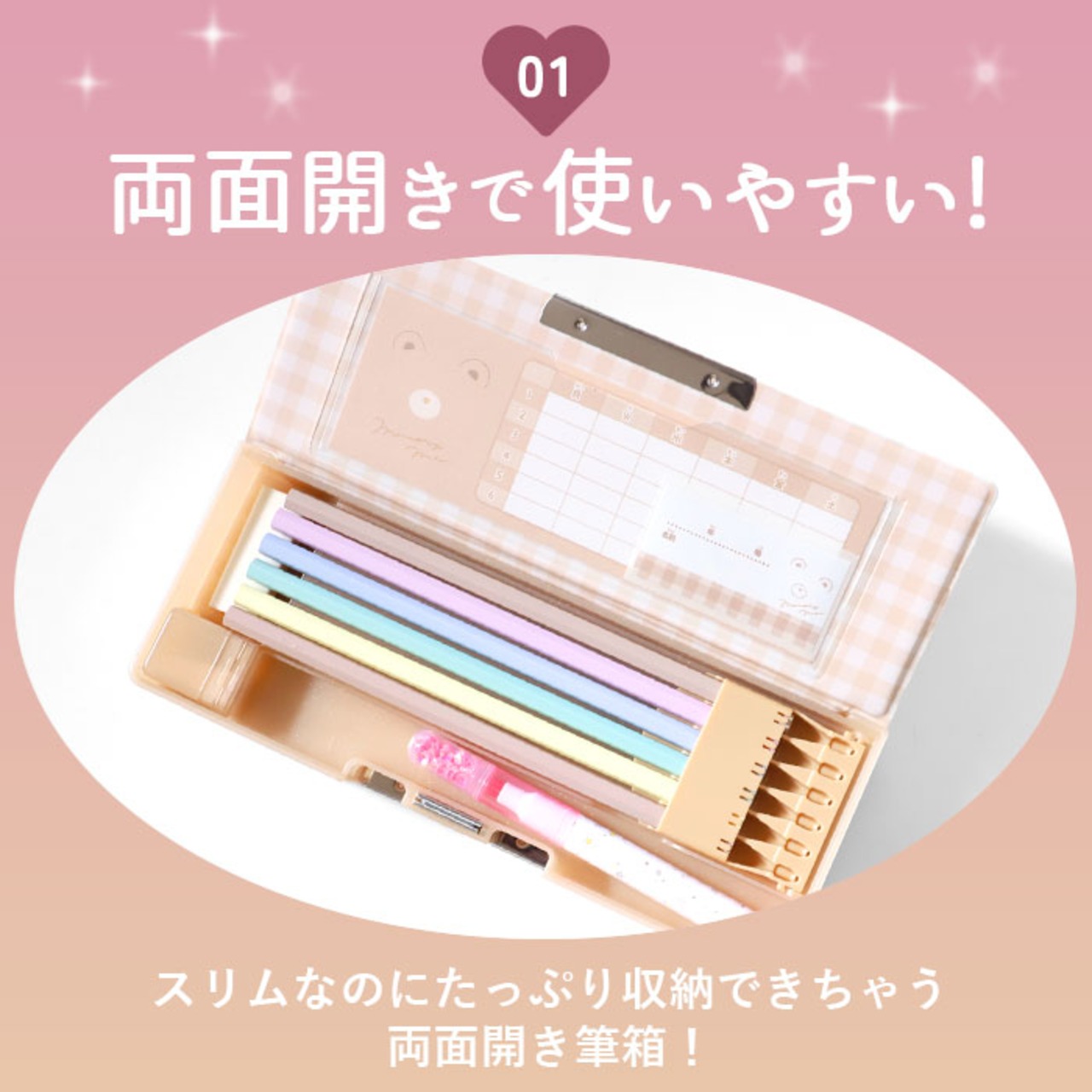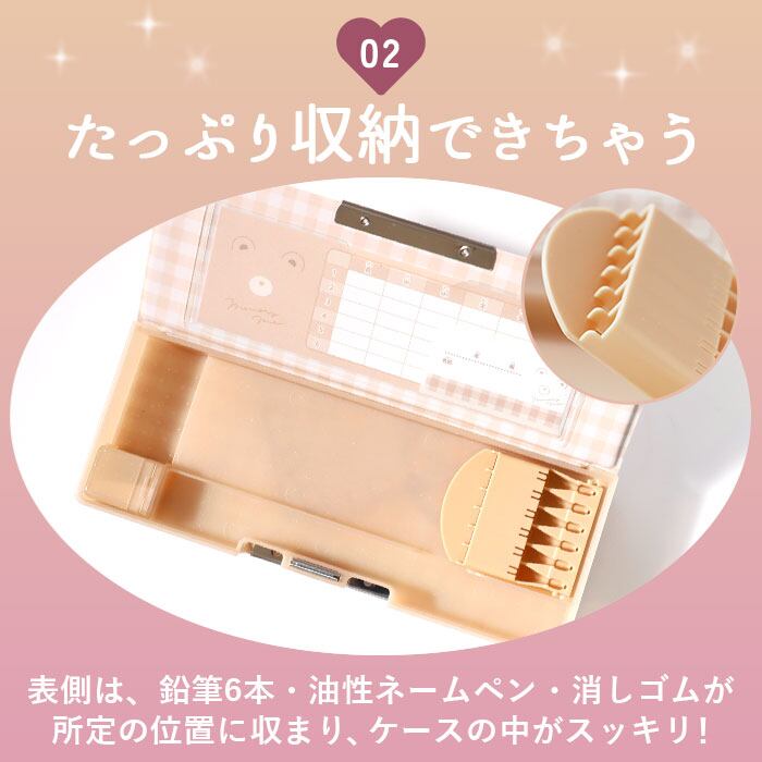 ・両面開きで使いやすいボックス型筆箱。スリムなのにたっぷり収納できちゃうのが嬉しい♪