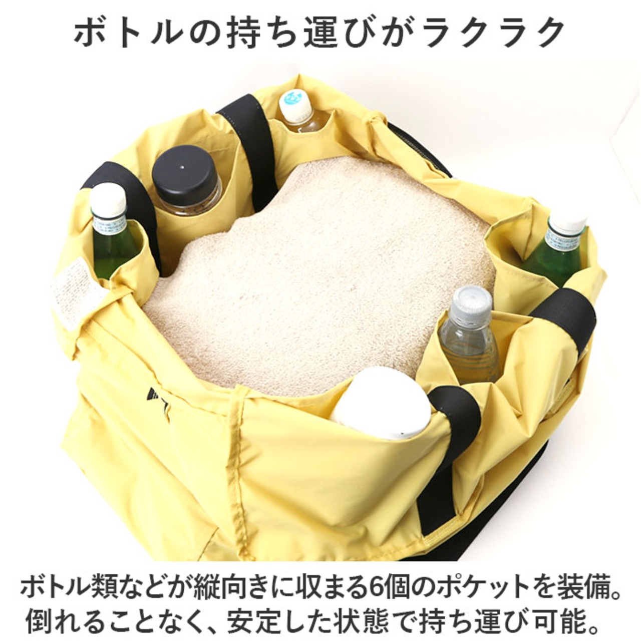 ・ボトル類などが縦向きに収まる6個のポケットを装備。倒れることなく、安定した状態で持ち運び可能。