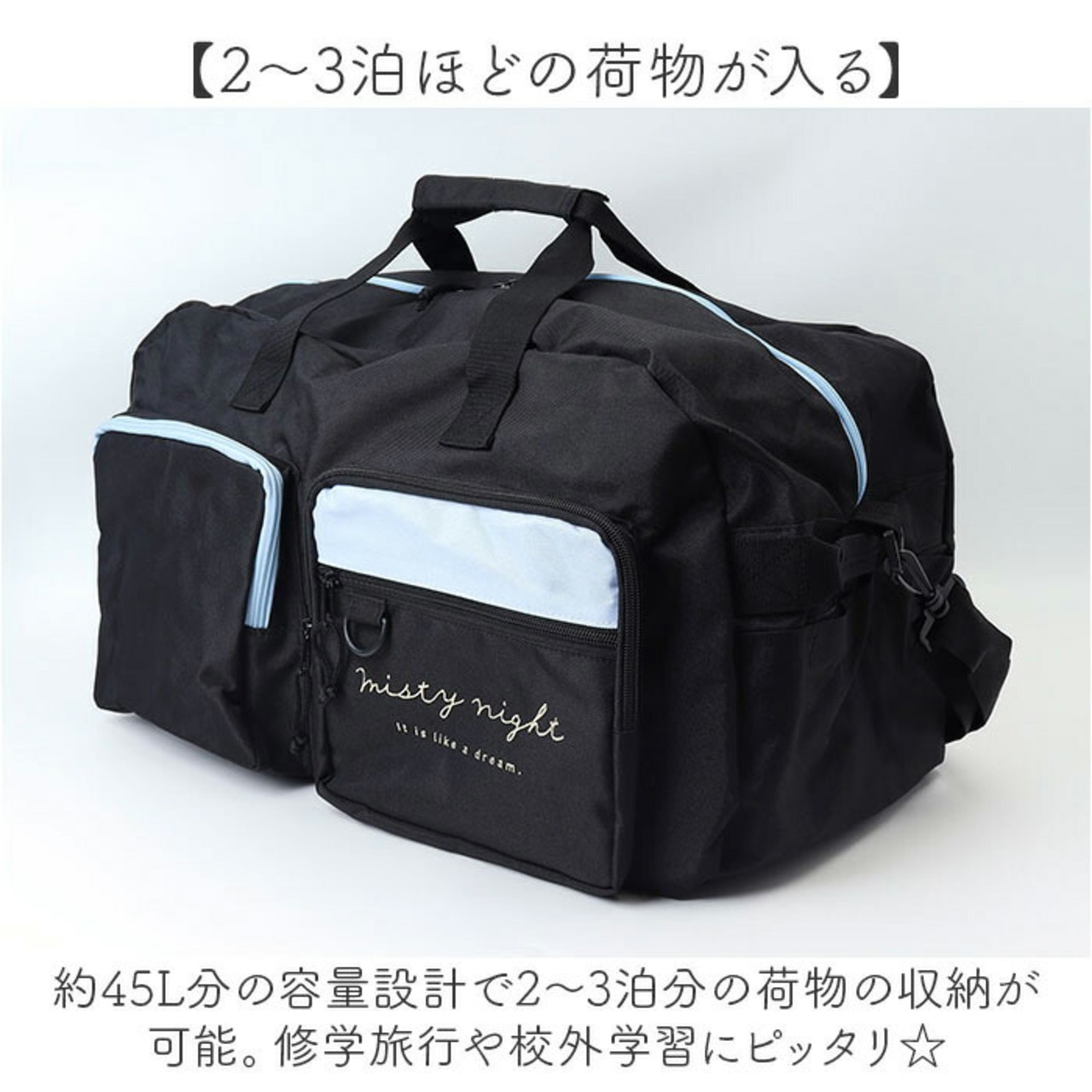・約45L分の容量設計で2〜3泊分の荷物の収納が可能。修学旅行や校外学習にピッタリ☆