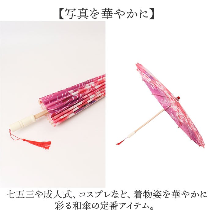・七五三や成人式、コスプレなど、着物姿を華やかに彩る和傘の定番アイテム。