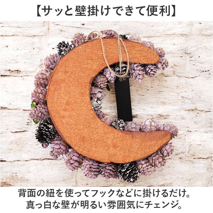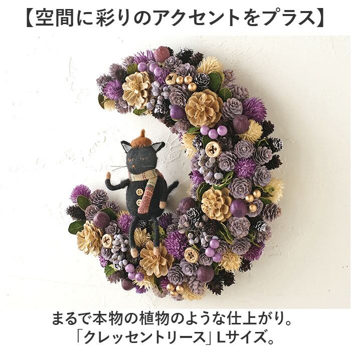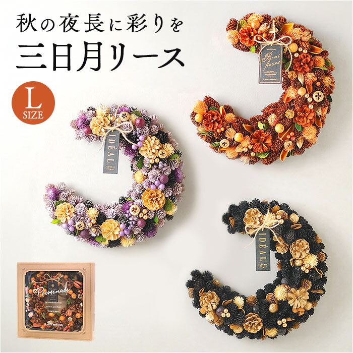 ハロウィン 秋 リース 玄関 通販 三日月リース オータムリース ドライリース Lサイズ 直径約33cm クレッセントリース GREEN HOUSE グリーンハウス 天然素材 三日月型 ハーフムーン ギフトボックス 玄関飾り 壁飾り おしゃれ インテリア雑貨