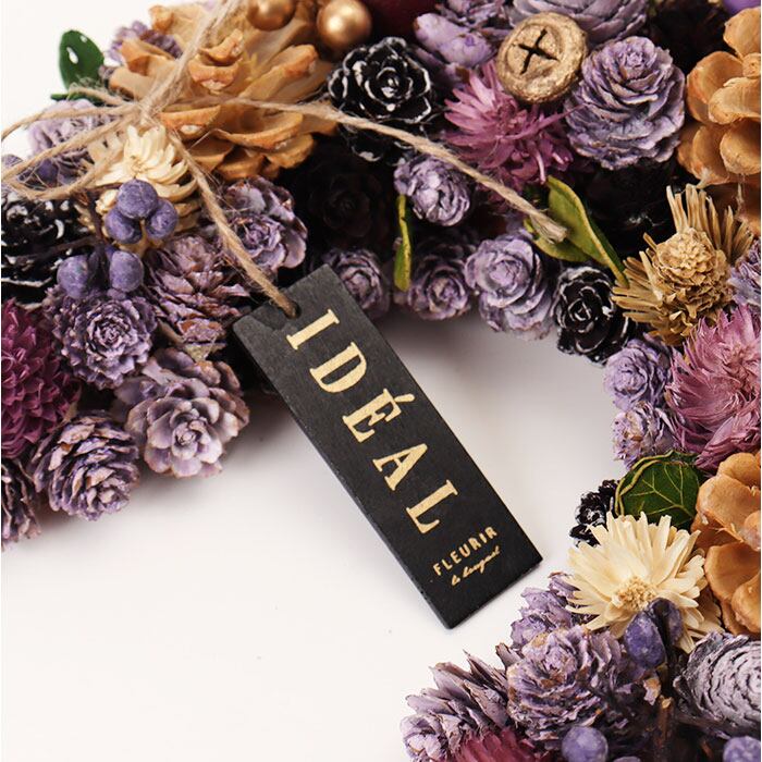 ・お花や葉っぱで作られたリース。「幸運がいつまでも続くように」と願いを込めたアイテム。