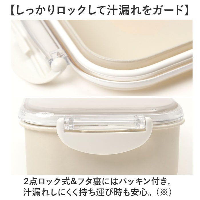 ・2点ロック式&フタ裏にはパッキン付き。汁漏れしにくく持ち運び時も安心。