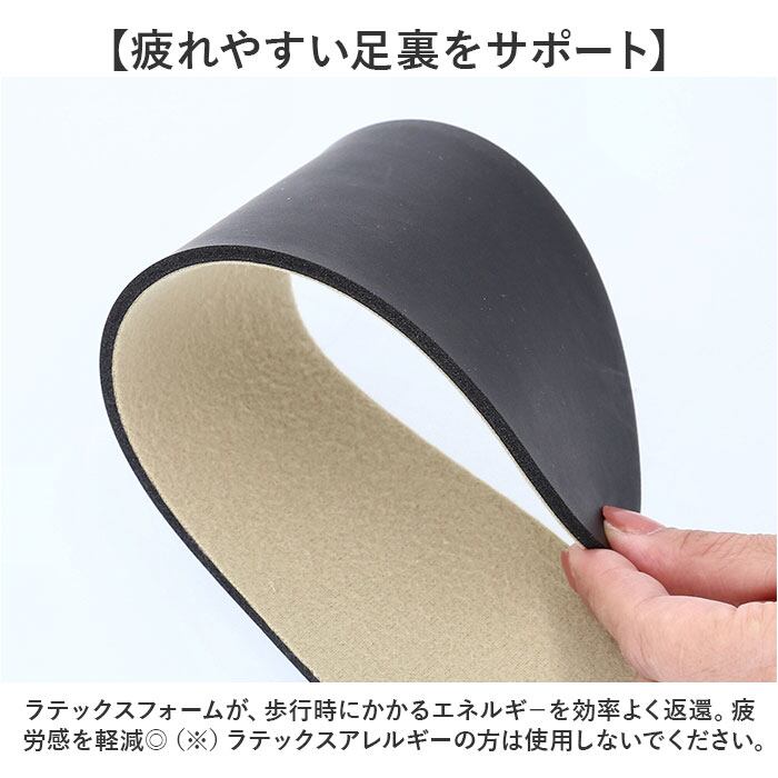・ラテックスフォームが、歩行時にかかるエネルギ-を効率よく返還。疲労感を軽減◎