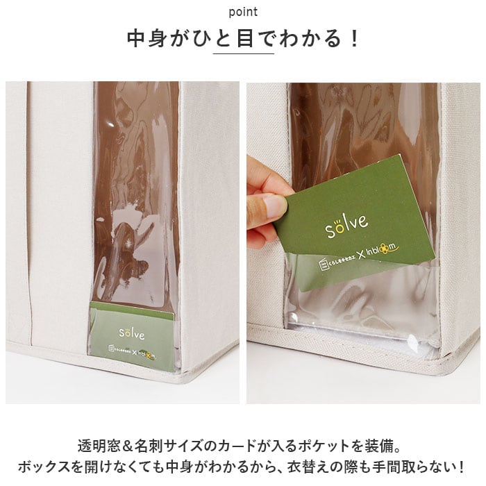 ・透明窓&名刺サイズのカードが入るポケットを装備。ボックスを開けなくても中身がわかるから、衣替えの際も手間取らない!