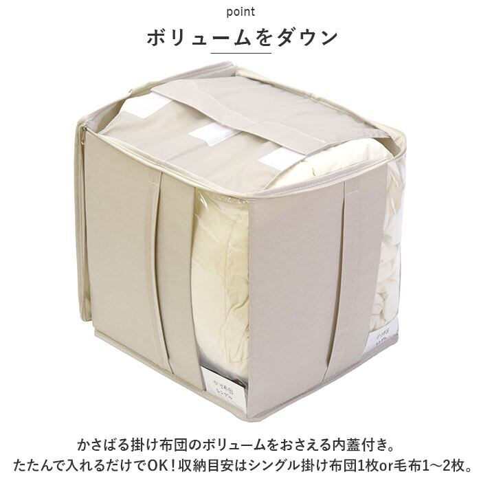 ・かさばる掛け布団のボリュームをおさえる内蓋付き。たたんで入れるだけでOK!収納目安はシングル掛け布団1枚or毛布1~2枚。