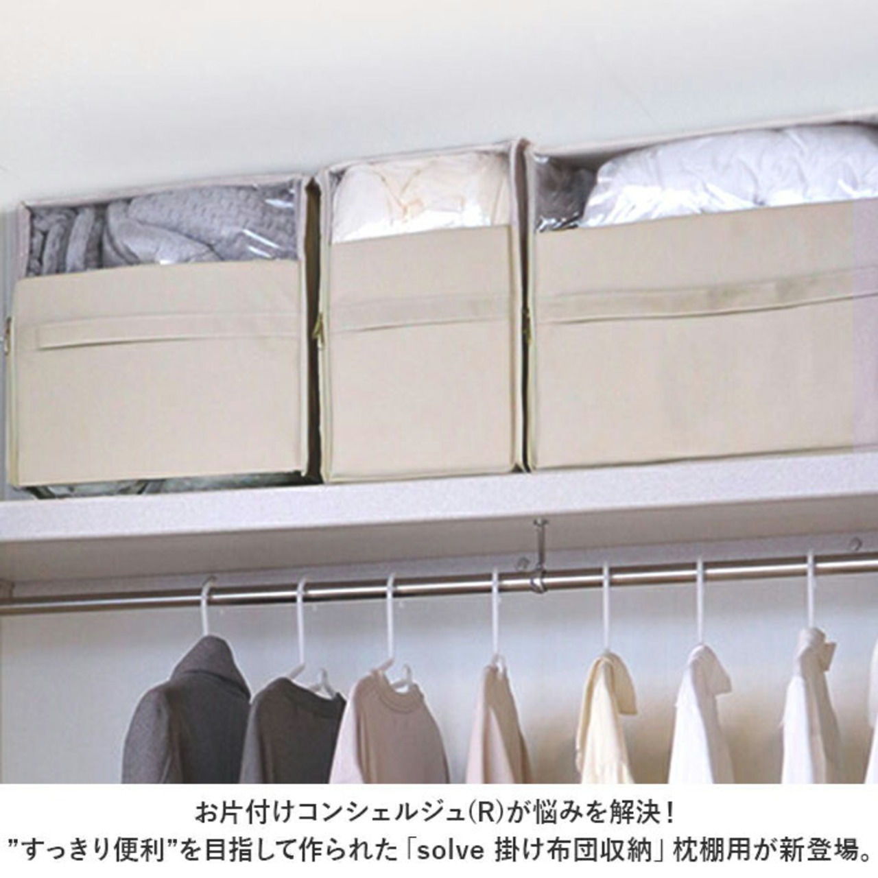 ・お片付けコンシェルジュ(R)が悩みを解決!”すっきり便利”を目指して作られた「solve 掛け布団収納」枕棚用が新登場。