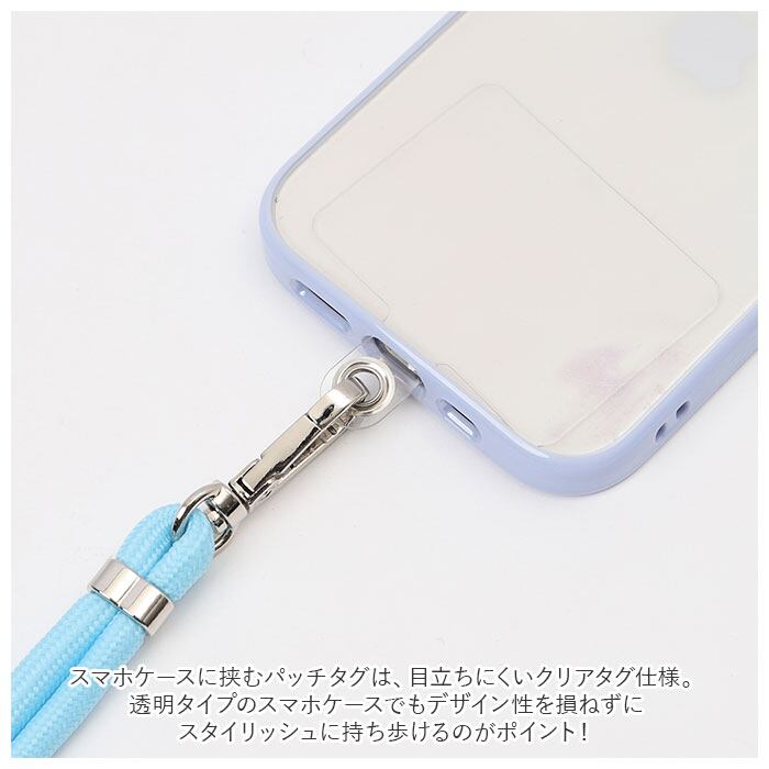 ・スマホケースに挟むパッチタグは、目立ちにくいクリアタグ仕様。透明タイプのスマホケースでもデザイン性を損ねずにスタイリッシュに持ち歩けるのがポイント!
