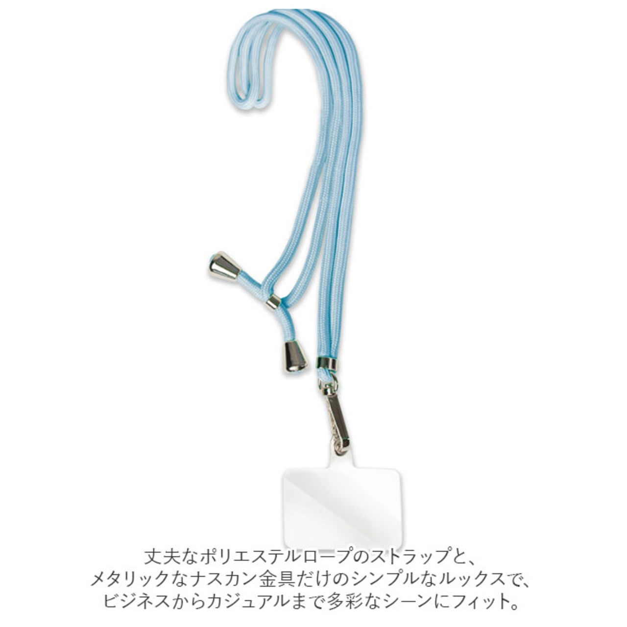 ・丈夫なポリエステルロープのストラップと、メタリックなナスカン金具だけのシンプルなルックスで、ビジネスからカジュアルまで多彩なシーンにフィット。