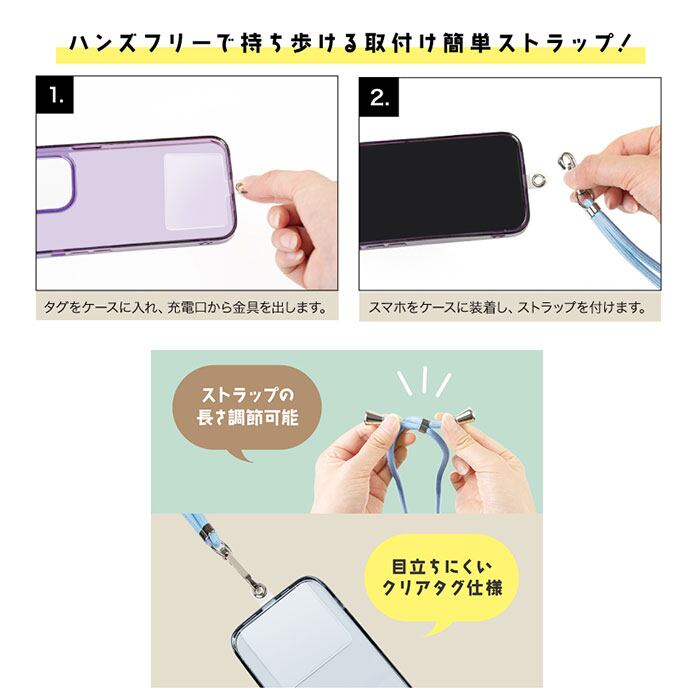 スマホ ネックストラップ 通販 ネック ストラップ 首掛け 長さ 調節可能 スマホネックストラップ 簡単取り付け クリアタグ 高級感 スマートフォン ハンドフリー 便利 手ぶら てぶら 携帯 スマホアクセサリー スマホアクセサリ