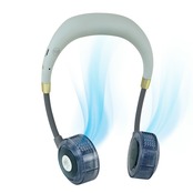 ・暑い時、暑い場所でいつでもどこでも、首にかけるだけの携帯用扇風機です。くすみカラーとクリアの大人可愛い、ファッション性を高めたデザイン。