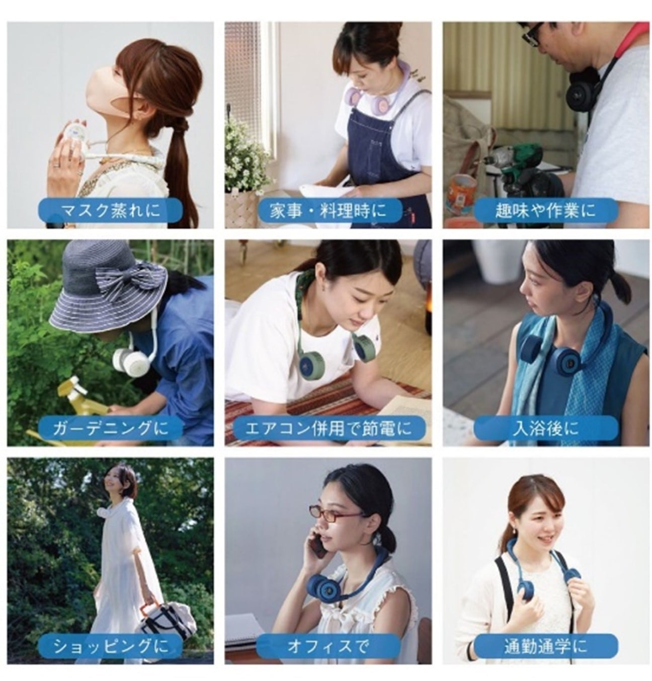 ・真夏のフェスやアウトドア、スポーツ観戦、散歩、山登り、遠足、お祭りや日常生活でのガーデニング、お風呂上り、お化粧時、家事の時、通勤、通学、オフィスなどあらゆる場面で活躍するアイテム。