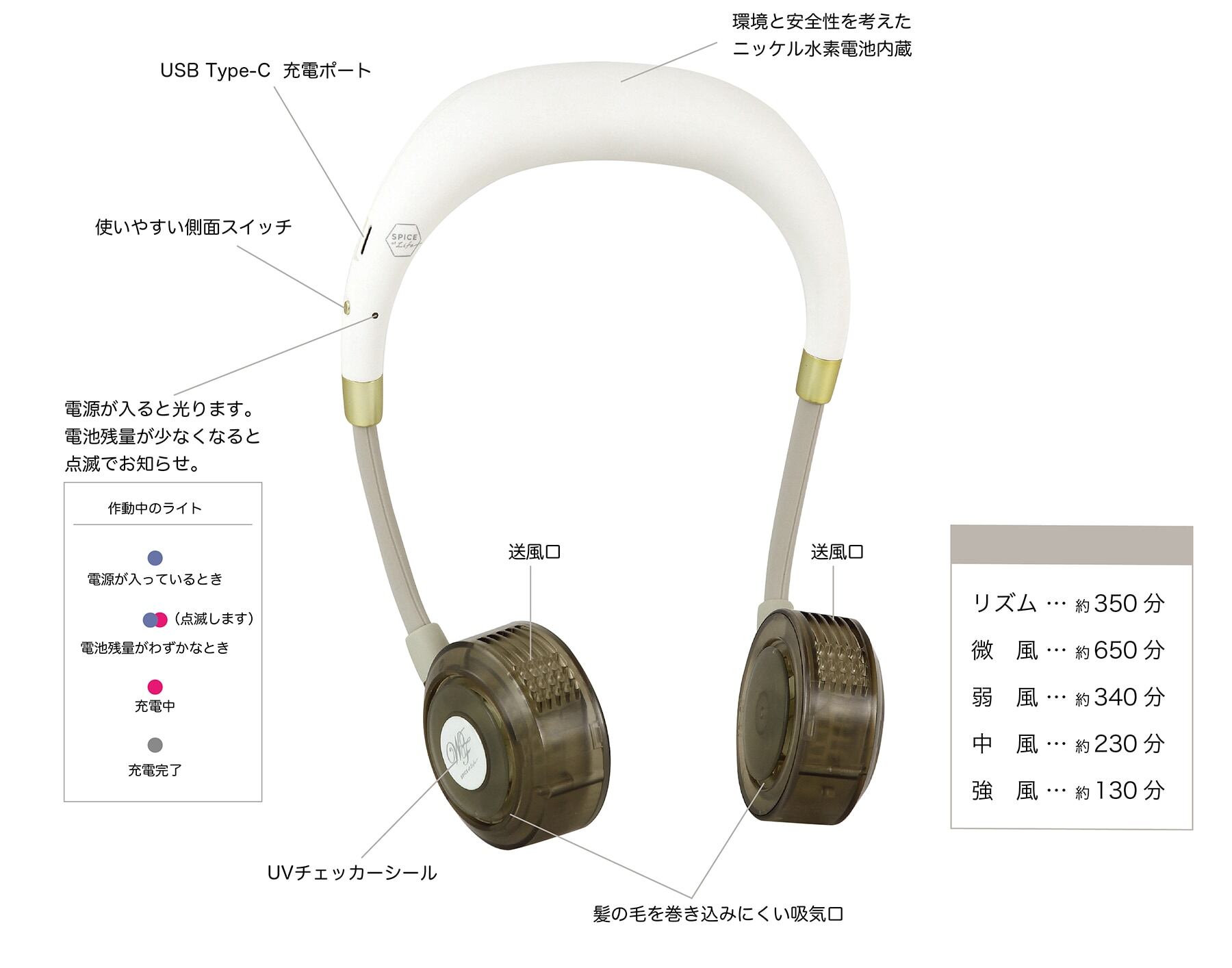 SPICE OF LIFE 扇風機 ヨガシロッコ 通販 首かけ扇風機 首掛け扇風機 ネックファン 首掛けハンディファン 首かけファン ダブルファン ハンズフリー 卓上 おしゃれ かわいい 充電式 USB充電 USB扇風機 DFYS231 空調家電 季節家電
