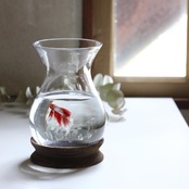 ・木部分は軽量な桐材を使用。ガラスベースからはずせるつくりなので水替え時も安心。