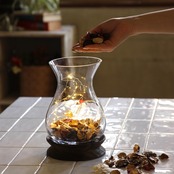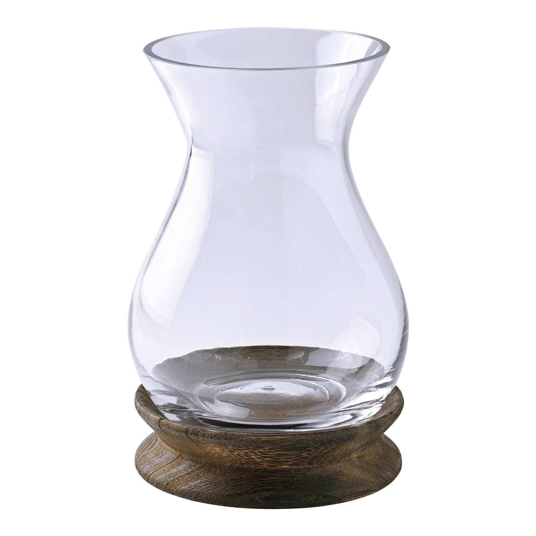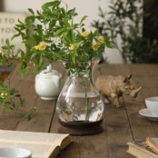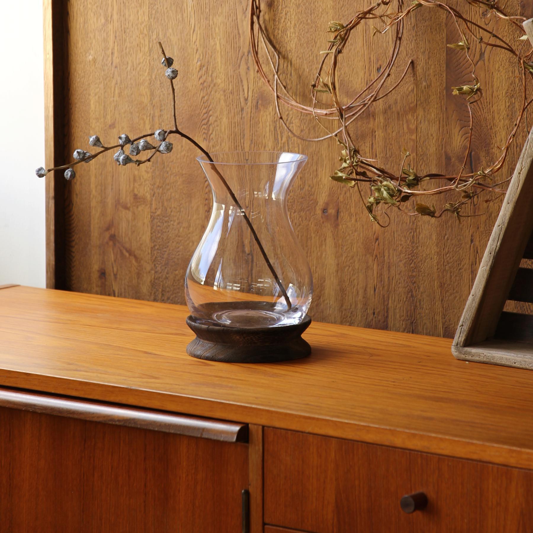 ・ガラスと木を組み合わせたデザイン性の高い生けやすいサイズのフラワーベース。