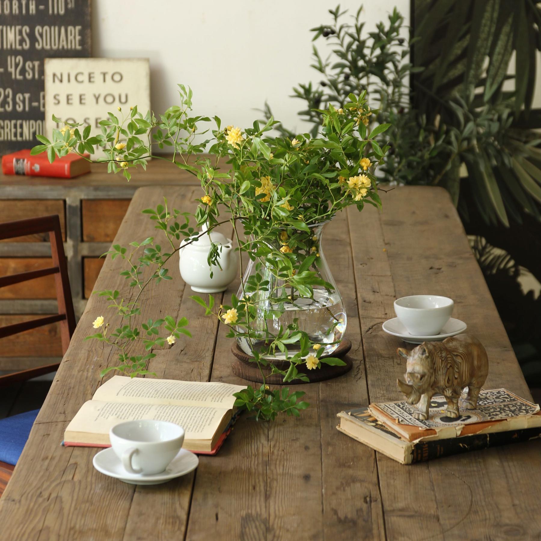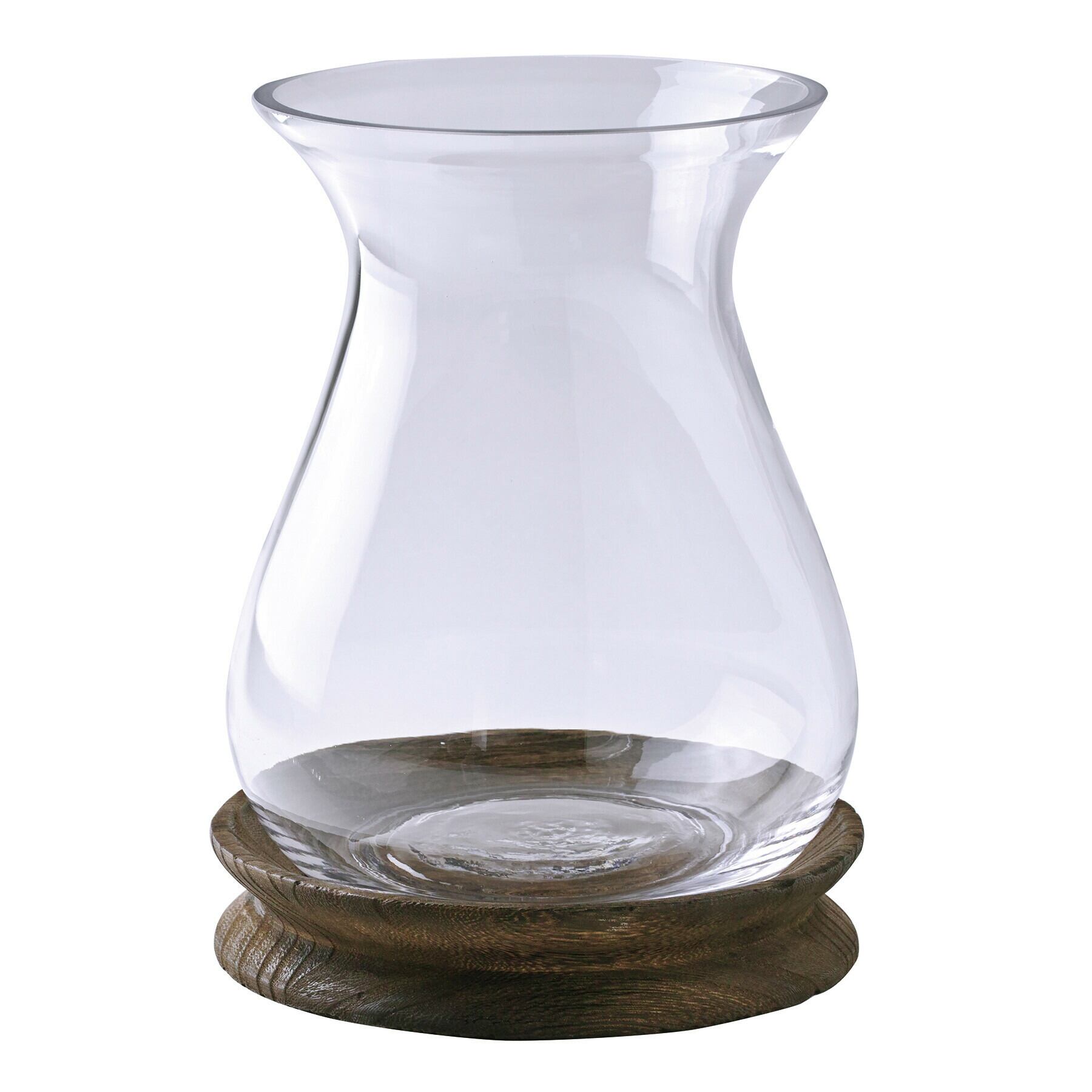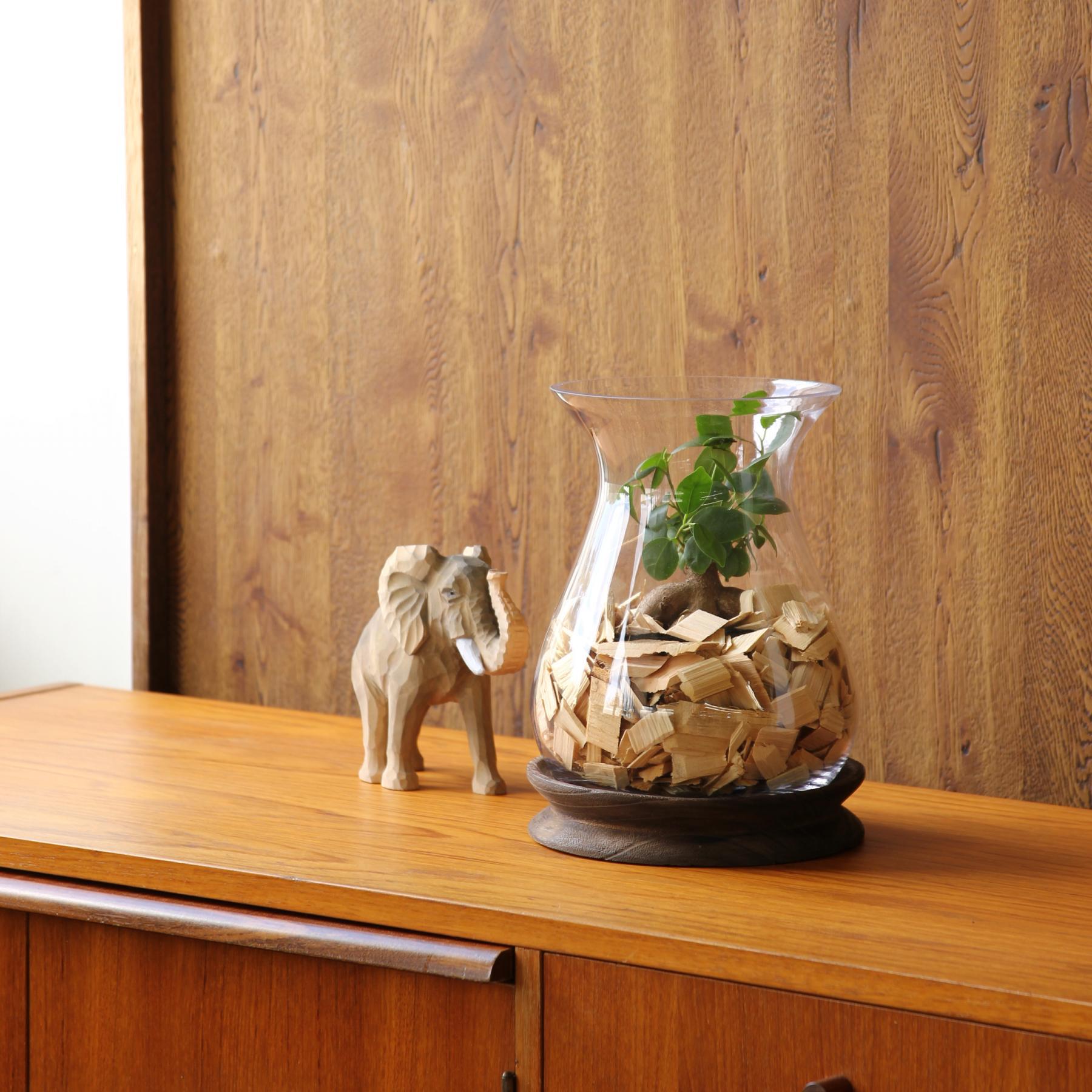 ・ガラスと木を組み合わせたデザイン性の高い生けやすいサイズのフラワーベース。