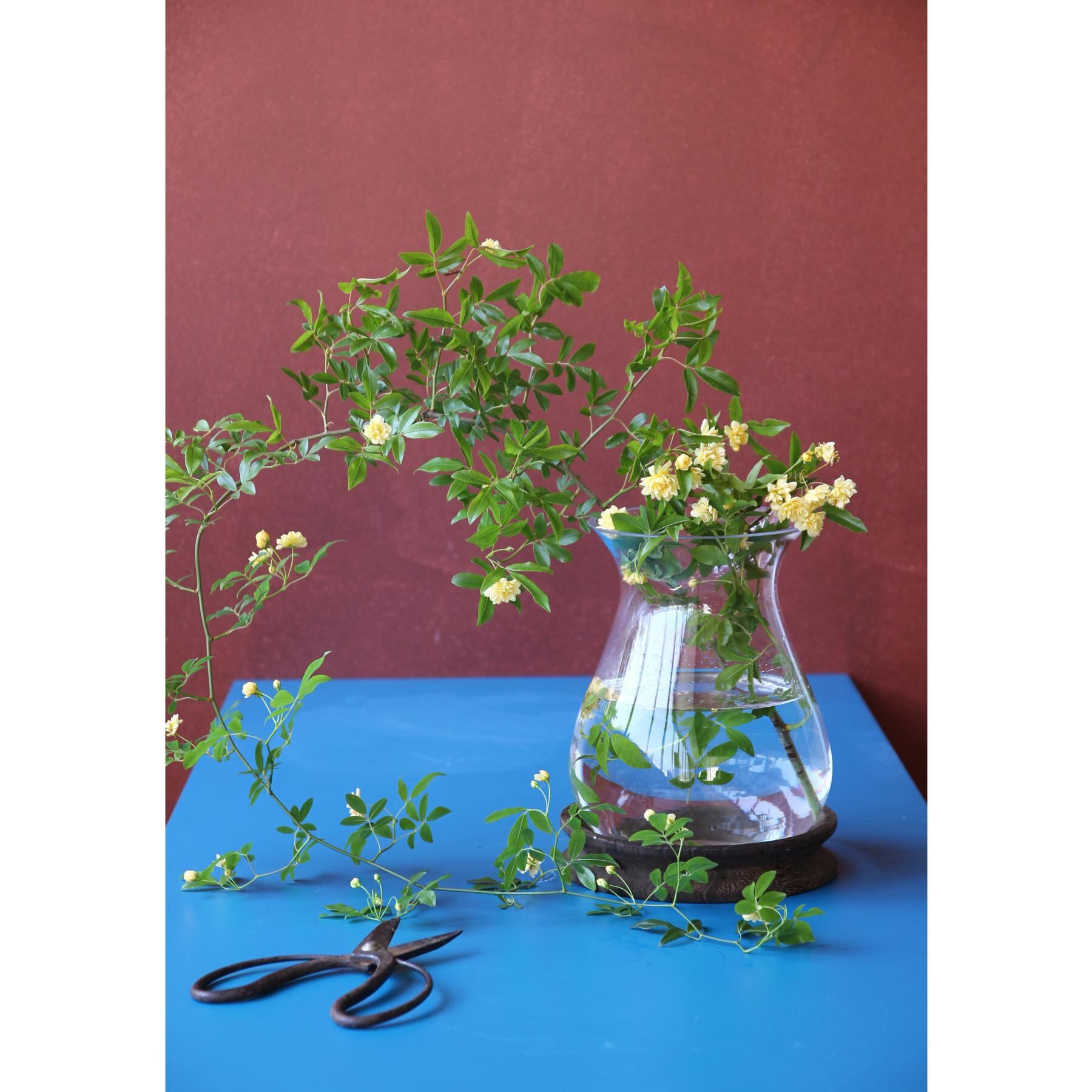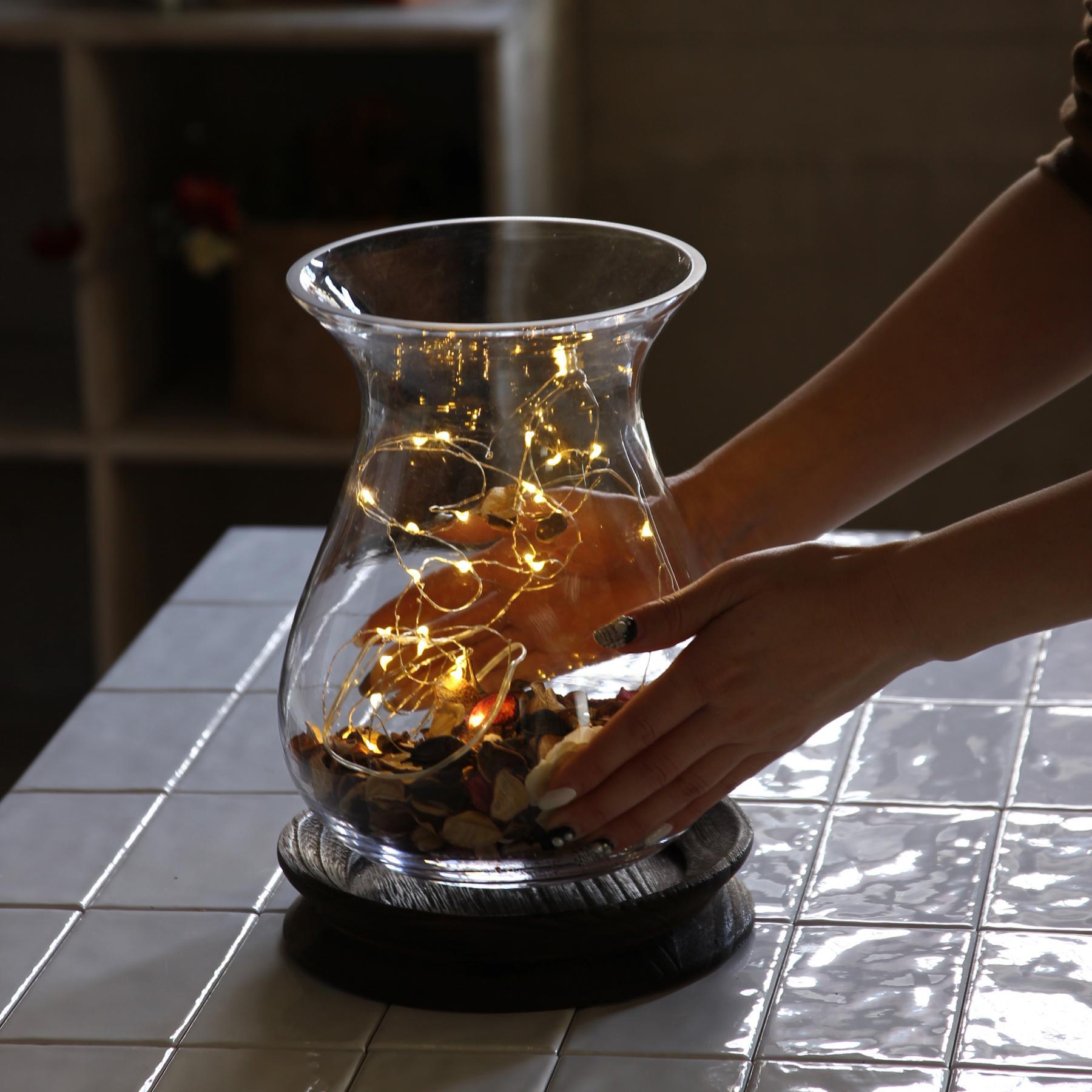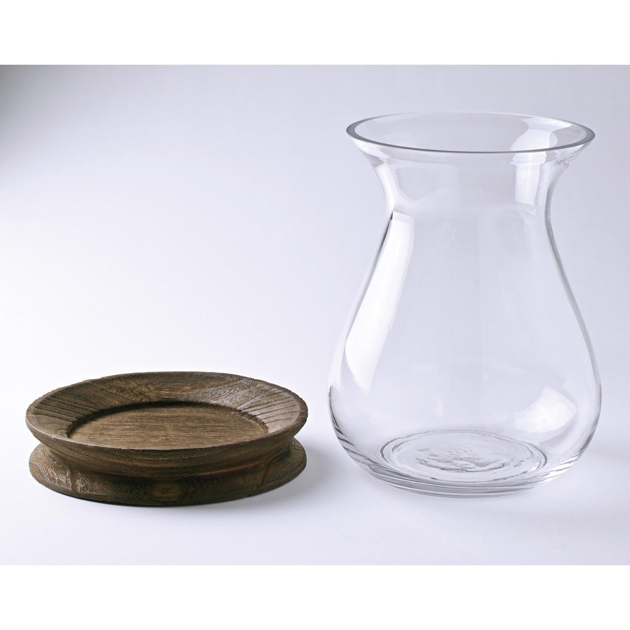 ・ガラスと木を組み合わせたデザイン性の高い生けやすいサイズのフラワーベース。