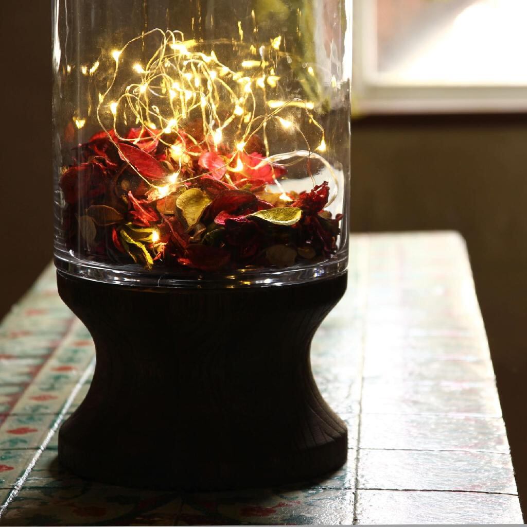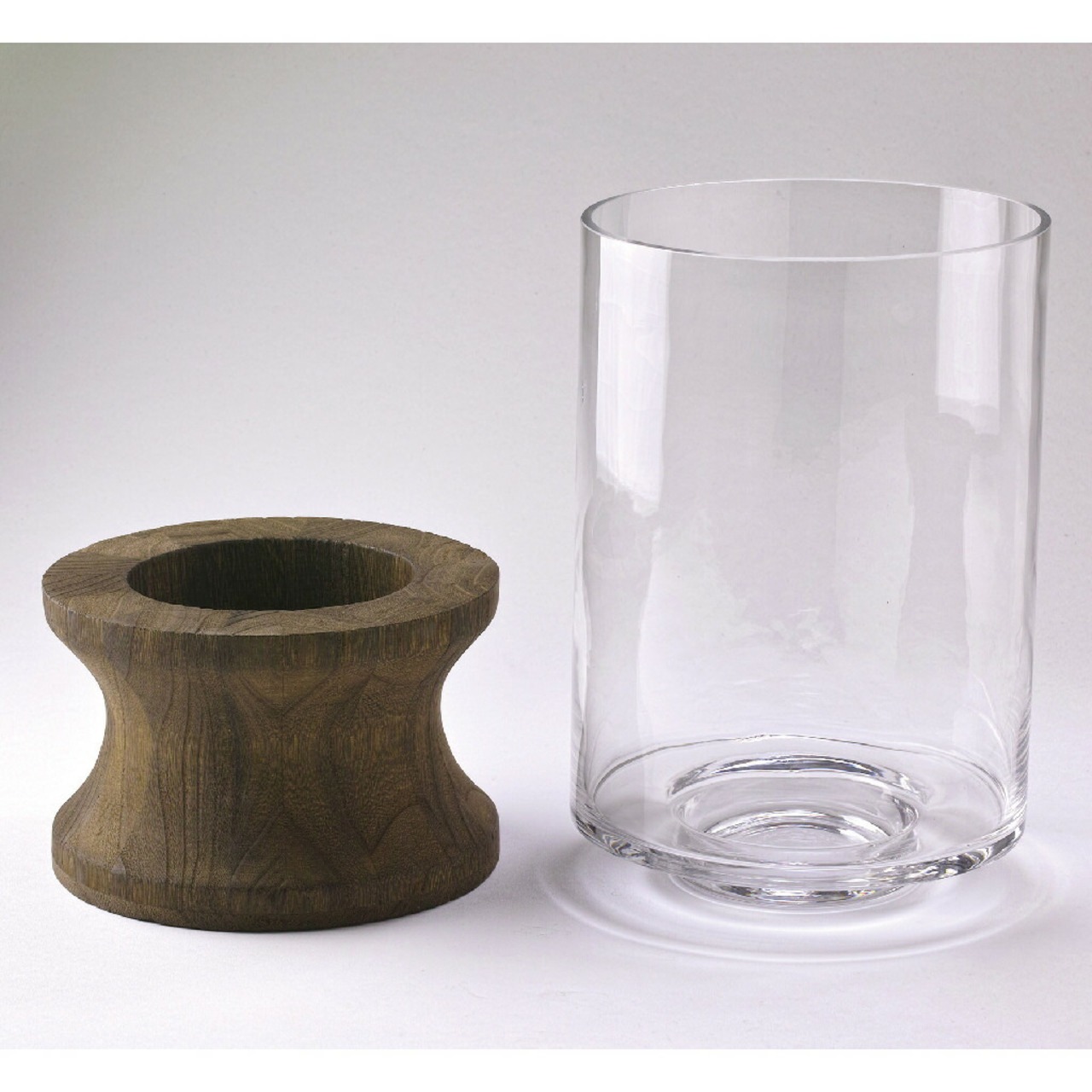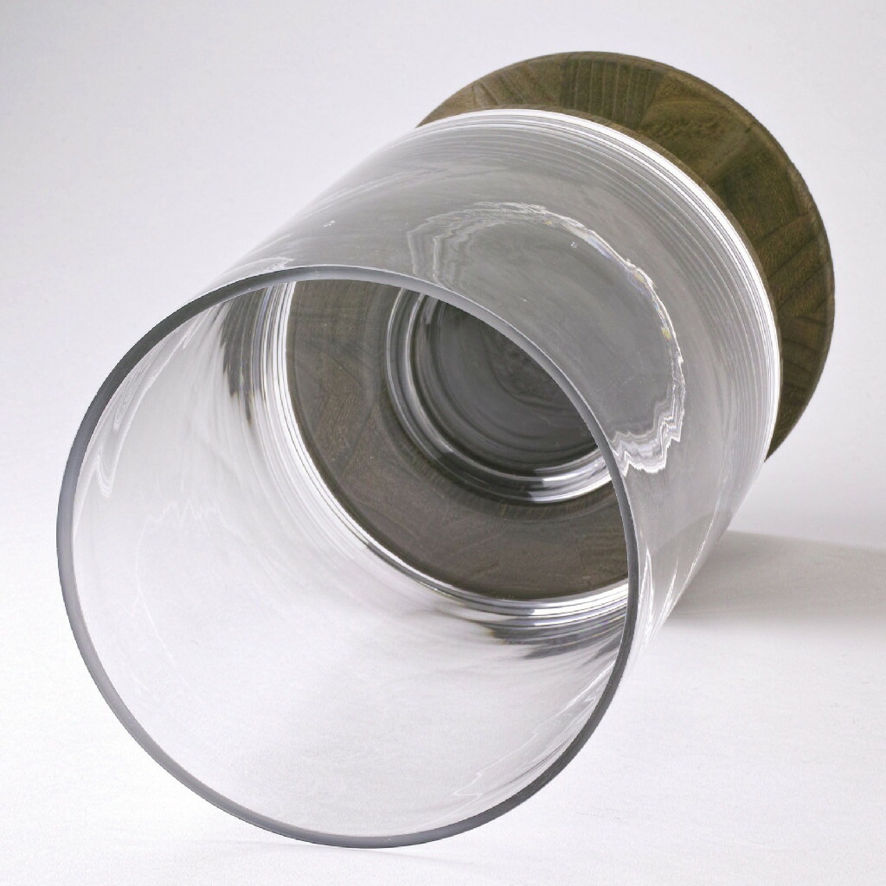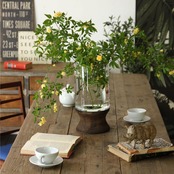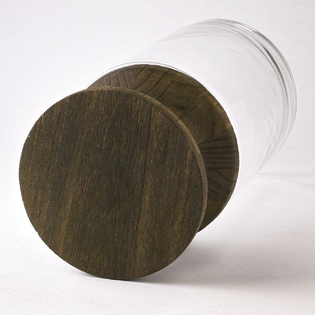・ガラスと木を組み合わせたデザイン性の高い大きめサイズのフラワーベース。